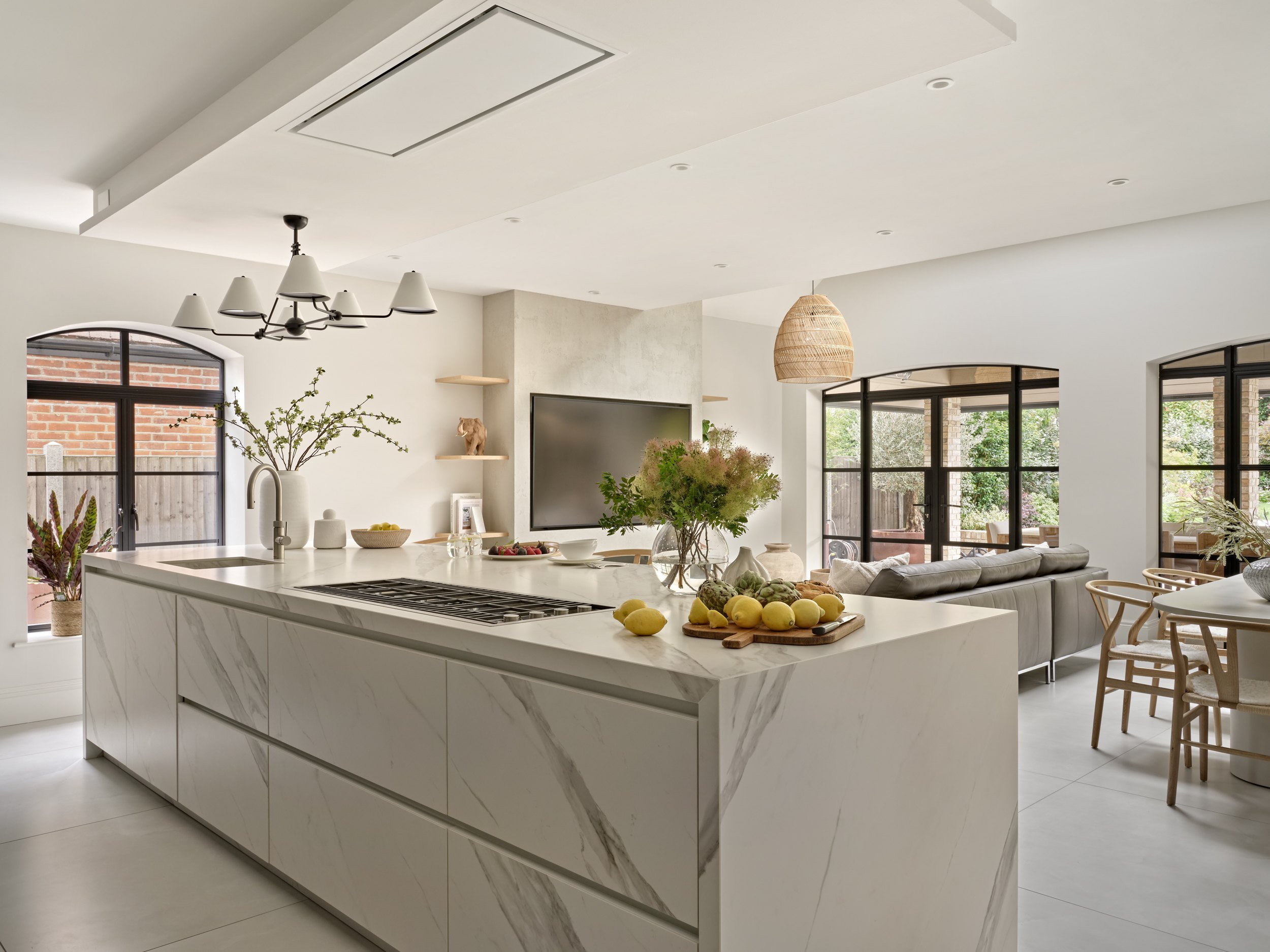 At Halcyon, with over 40 years of expertise, we guide our clients through every stage of the design process, from layout and materials to cabinetry and lighting, ensuring each open plan kitchen is tailored to the way they live.
