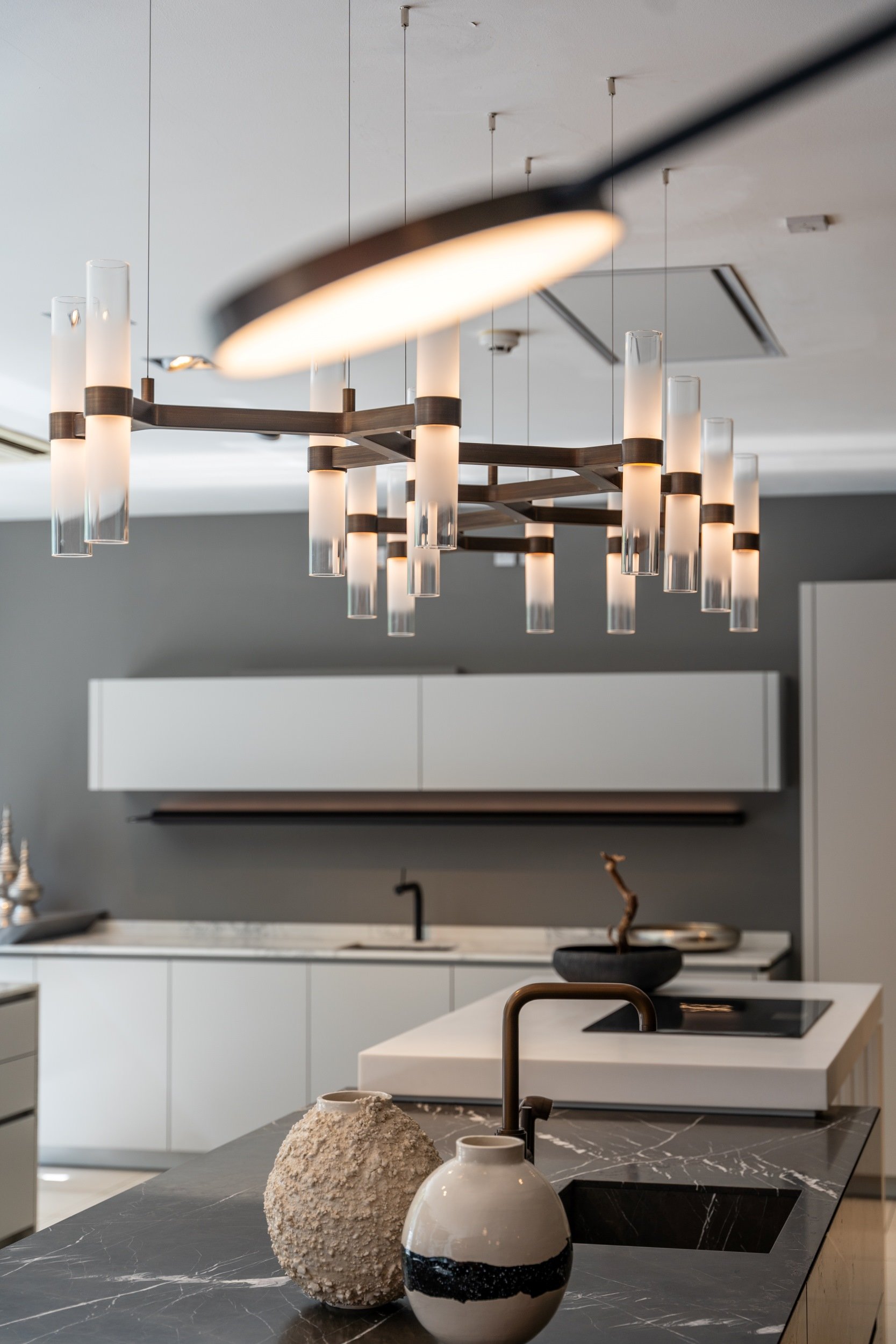 Each light was individually crafted for each area of our showroom, to make a design statement and enhance the architectural aesthetic of our kitchens.